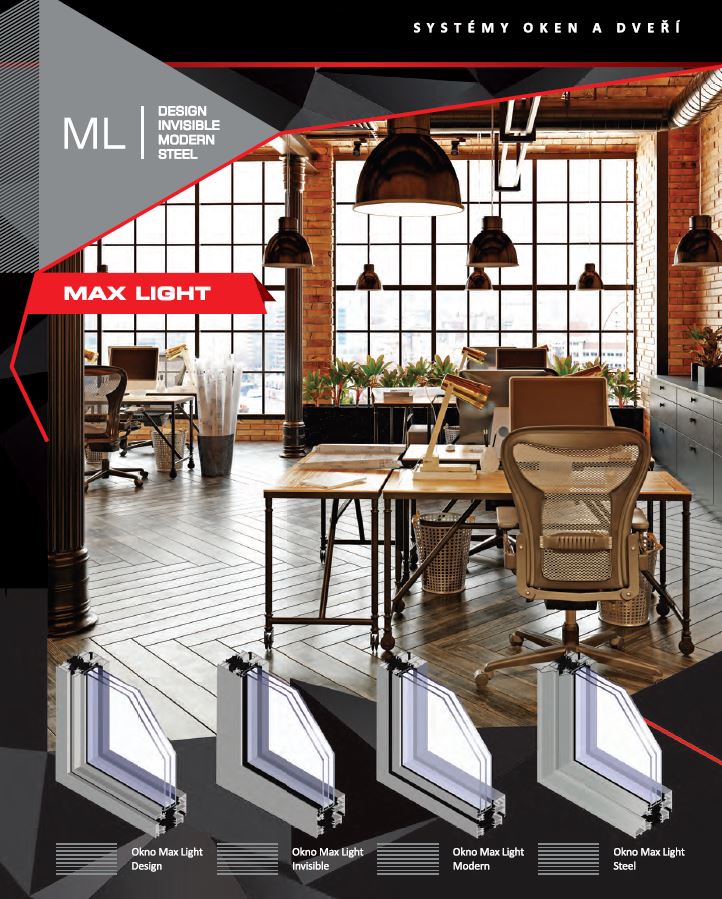 - Specifický tvar profilů systému MaxLight (podobně jako u ocelových systémů) dává konstrukci průmyslový a moderní charakter.