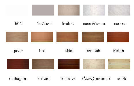 Povrchová úprava: C 34-tmavý bronz-eloxováno, EV1- přírodní barva(stříbrná) eloxováno, C 33-světlý bronz-eloxováno, RAL 9016 -bílá, práškově nanášená barva, vypalovaná